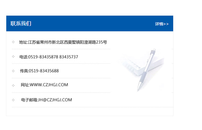 地址:常州市新北區友邦商務大廈1幢16、17層  電話:0519-85101652  傳真:0519-85112595  郵編:213022  網址:www.cz-jiayue_cn.ailinecology.com  郵箱:xiajifengaa@163.com